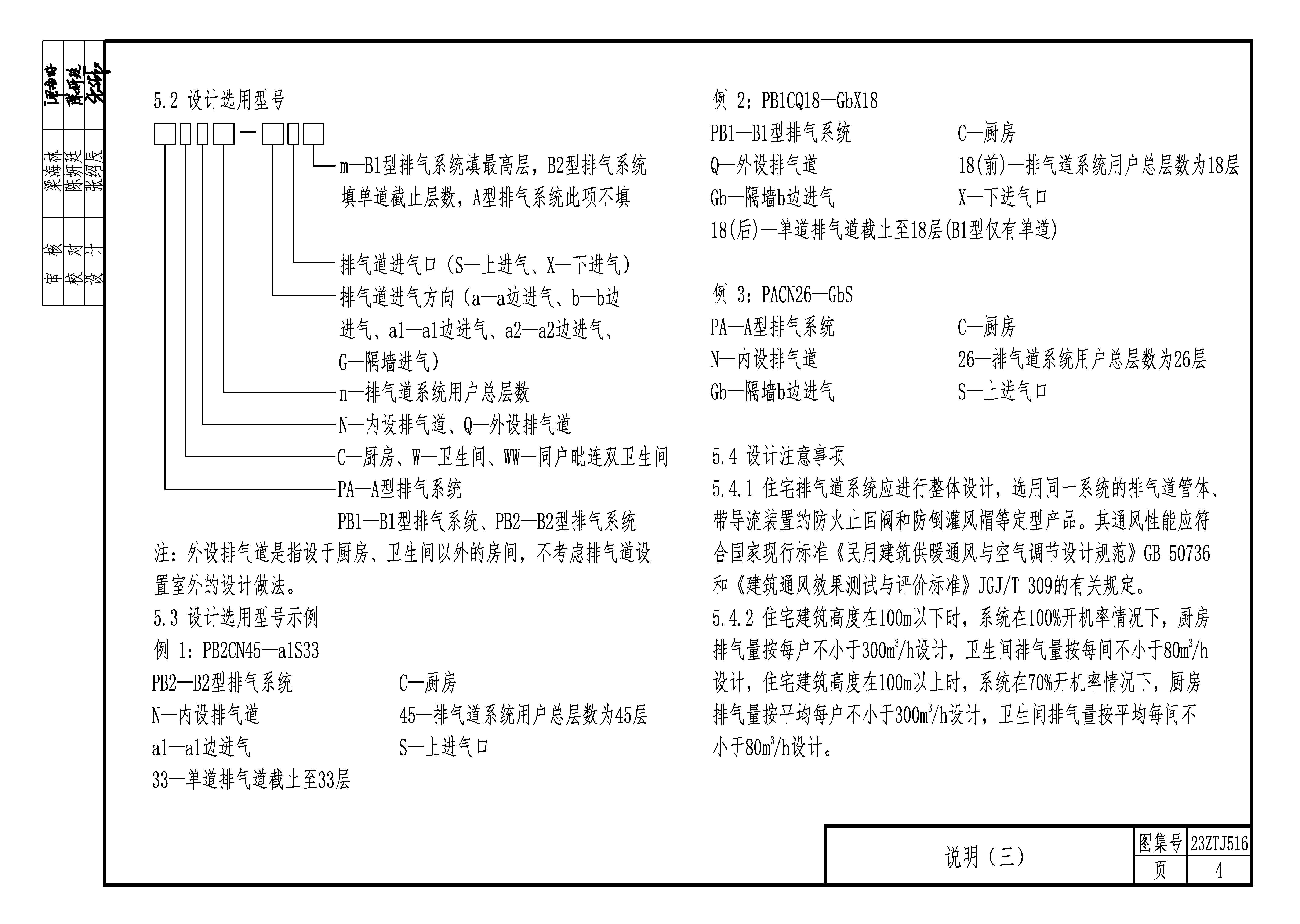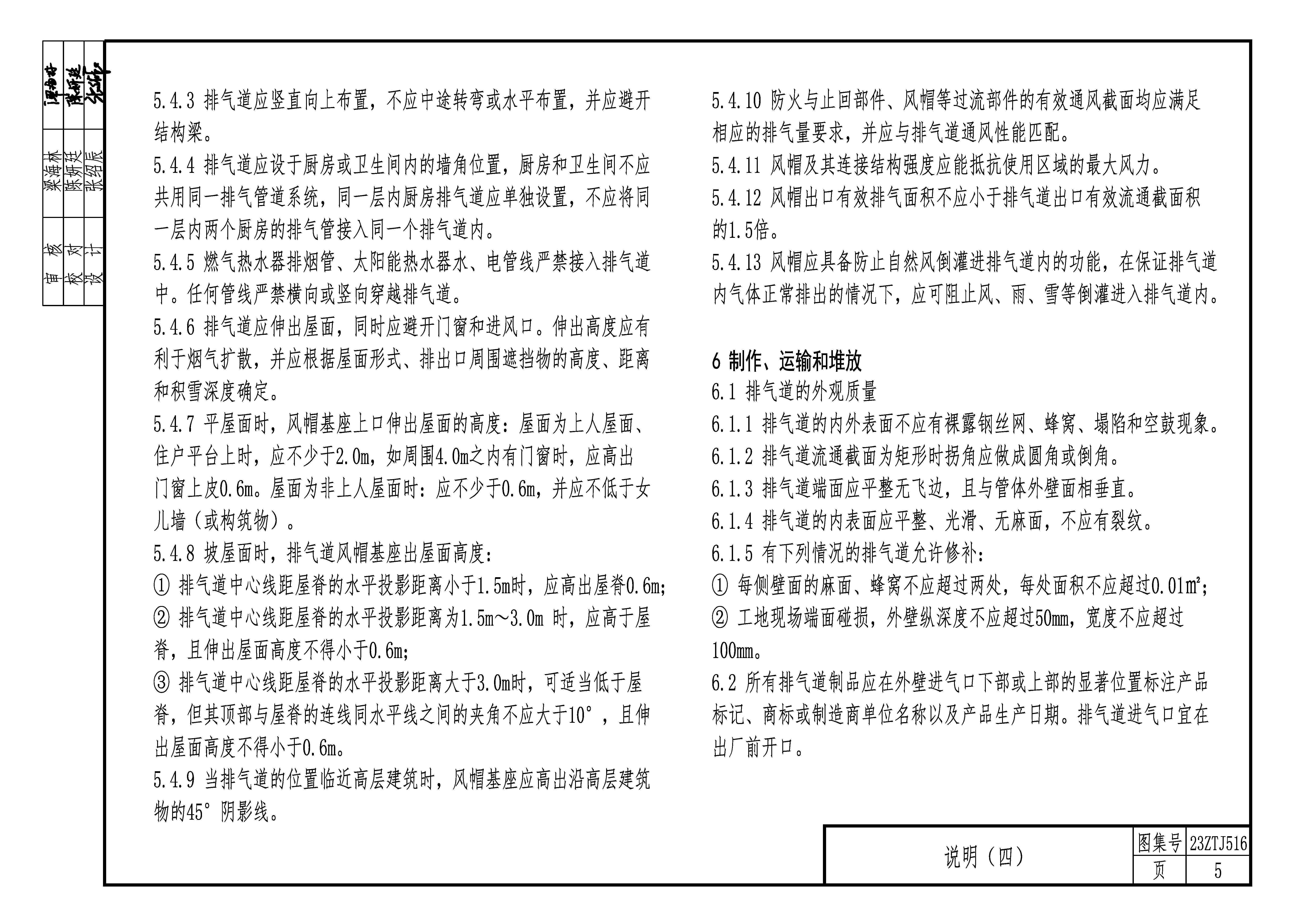 2.2本圖集提供了住宅廚房衛生間A型、B1型、B2型高密氣免粉刷排煙氣系統的承托接口詳圖、防火止回閥安裝詳圖、屋頂防倒灌風帽的安裝節點詳圖等。