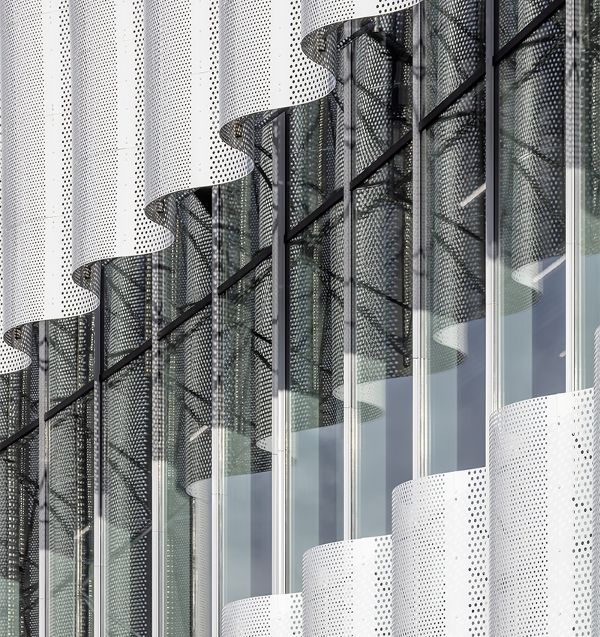 Ferrier Marchetti工作室與Chaix & Morel Associés和Populus合作,在法國奧爾良建造了 "CO'Met"體育館,這是一個會議和展覽中心。多功能設(shè)施匯集了三個不同的項目,將它們包圍在一個引人注目的建筑姿態(tài)中。該建筑沿著奧爾良的南部入口處設(shè)置了一個獨特的序列,形成了一個由波浪形穿孔鋼板制成的起伏的懸垂覆蓋立面。 該大廈舉辦體育和文化活動,以一種既獨特又連續(xù)的城市結(jié)構(gòu)形式安裝功能。