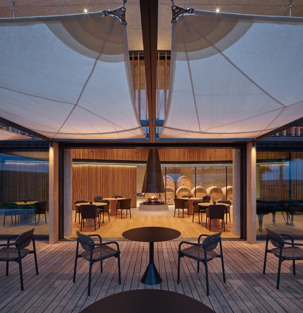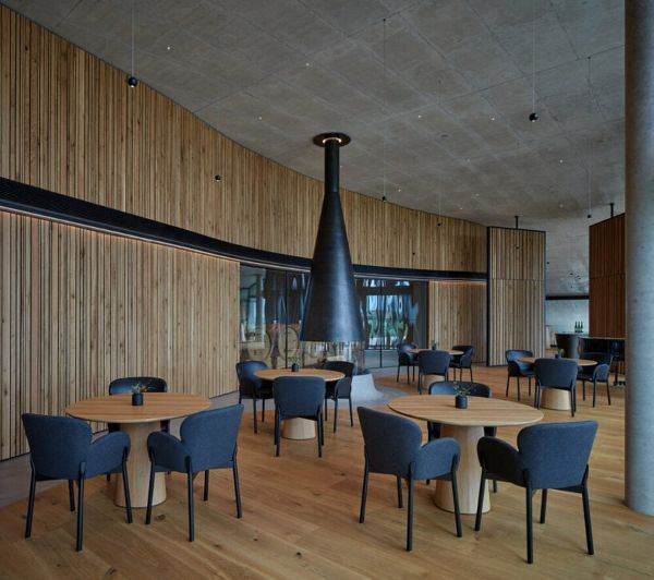 據(jù)設(shè)計團隊介紹,雖然該酒莊采用了傳統(tǒng)的地面設(shè)置,但其建筑概念體現(xiàn)了現(xiàn)代和永恒的本質(zhì)。場所內(nèi)的氣氛概括了美麗、優(yōu)雅和絕對的舒適。材料的選擇,包括裸露的混凝土、玻璃、金屬以及橡木和洋槐木,創(chuàng)造了一種整齊和直接的美感,與建筑的有機形式相得益彰。每一個細節(jié)都是精心制作的,確保精確和質(zhì)量。得益于廣闊的玻璃表面、寬敞的露臺和傾斜的屋頂,該酒莊與周圍的風景建立了直接的聯(lián)系。這種整合允許多樣化的自然體驗,捕捉到空間內(nèi)不斷變化的情緒和季節(jié)。