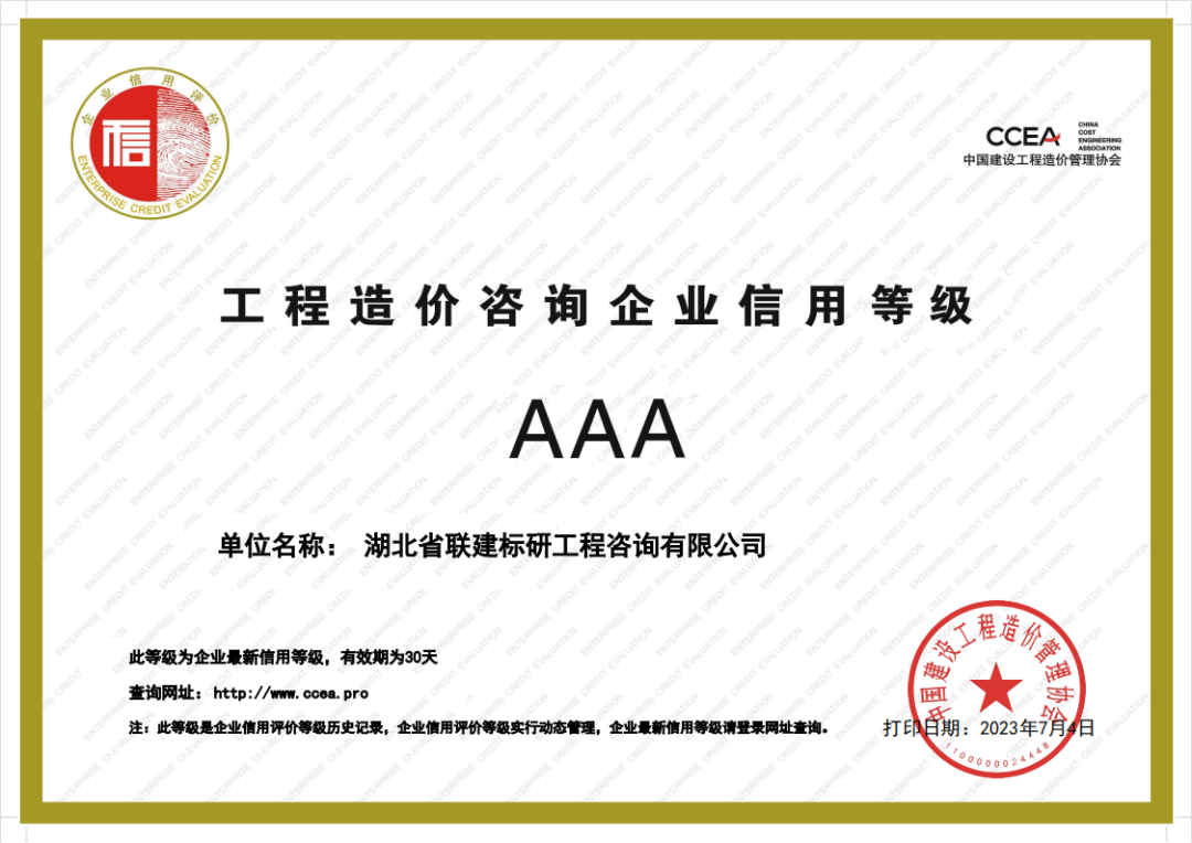 行業(yè)最高 | 省建筑設計院·聯(lián)建標研公司獲得工程造價咨詢企業(yè)AAA信用等級