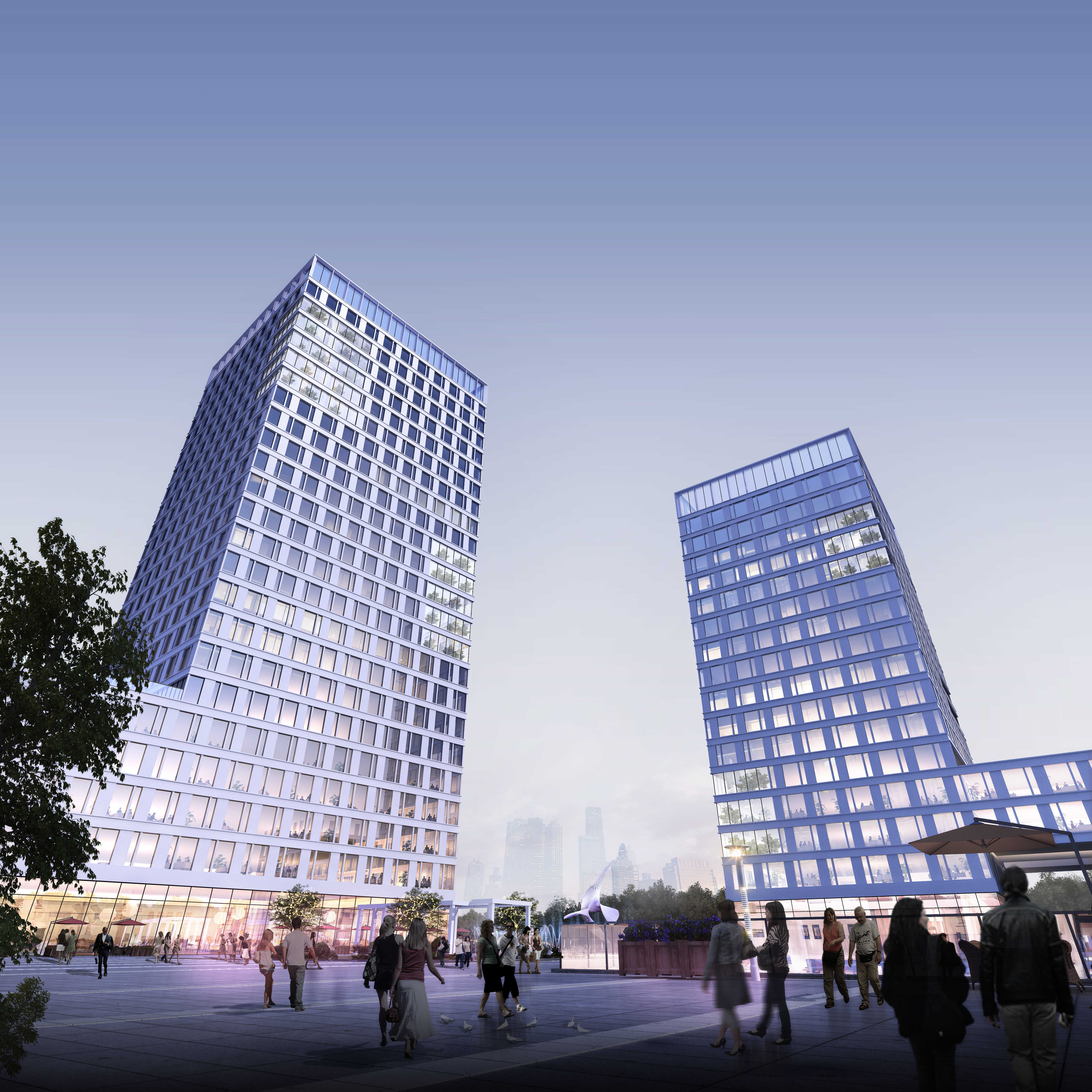 本工程為辦公型產業園區項目,基地東側暫未空地,南側為高新五路,西側為產業園區,北側為公園綠地。項目凈用地面積約為27025㎡,總建筑面積約為133913㎡,地塊內設有三棟辦公塔樓,構建豐富城市天際線。