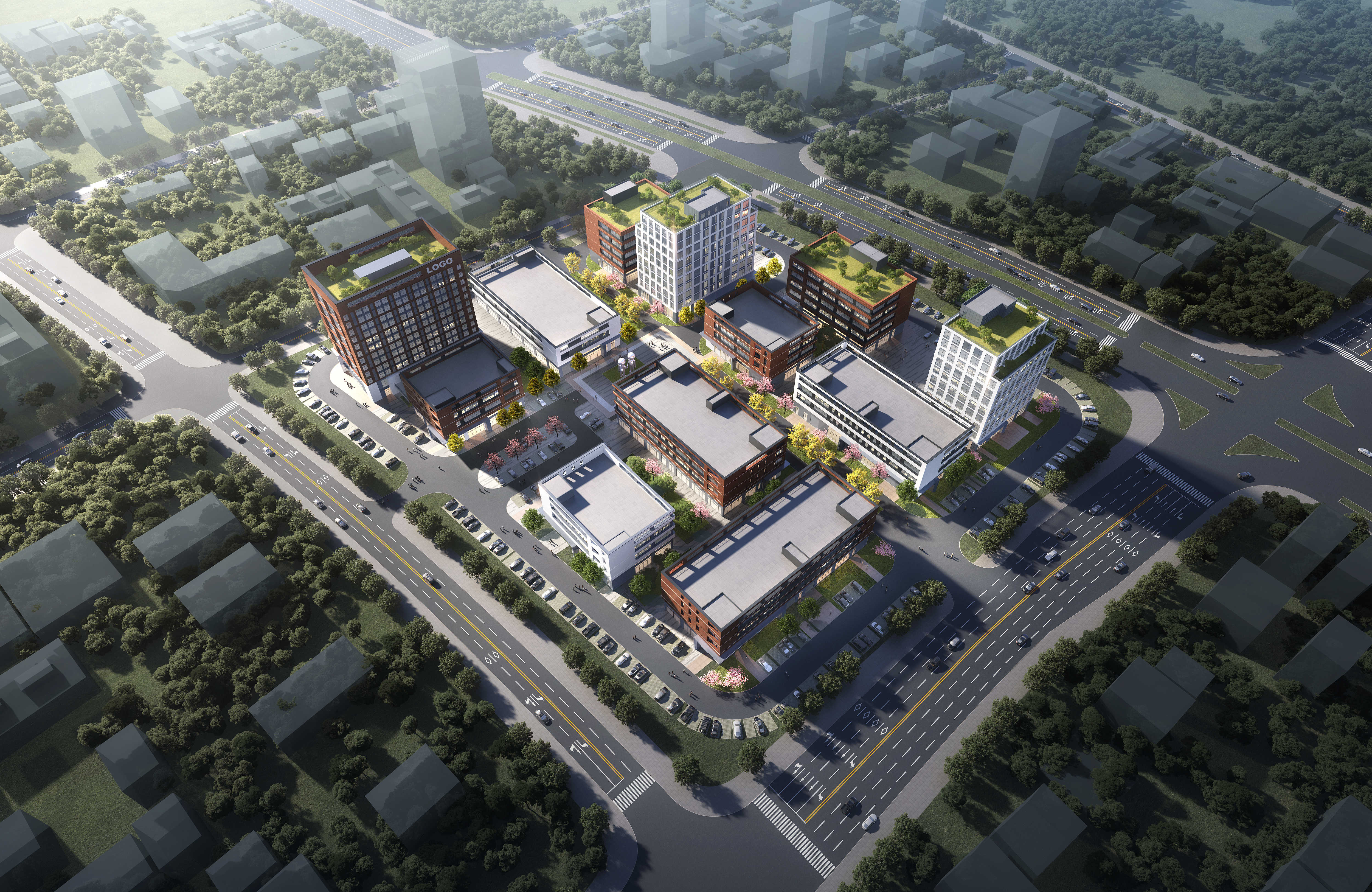 本項目位于鄂州市西部,西距武漢市中心城區 20 公里,項目凈用地面積為48916.92㎡,總建筑面積為73464.04㎡。項目采用兩軸一心多組團,在用地內部打造東西向人文軸線以及南北向景觀軸線,中央形成中心大景觀。在區域 重點位置設置高等級的形象建筑,其余為高低錯落的建筑群,打造多層次的建筑空間,在未來三路形象面上形成豐富變化的天際線 。