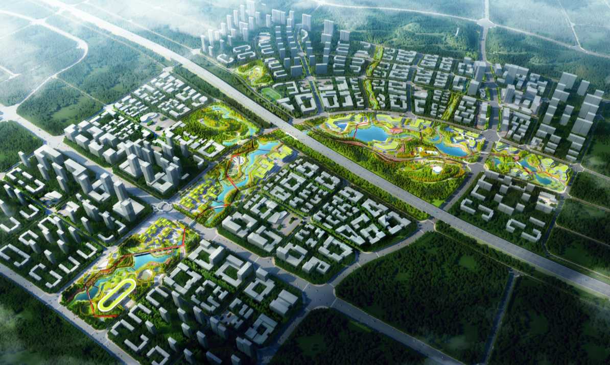 本項目設計范圍為47.2萬㎡,本項目一期開發北段綠廊配合產業園區打造綠色彈性空間,構建生態本底環境,以大數據云計算衍生科技交互的功能需求,打造云水慢境,生息融城的空間氛圍,構建承載休憩、雨洪安全、科普教育、活力交互、智慧共享的多重職能的綜合綠廊。