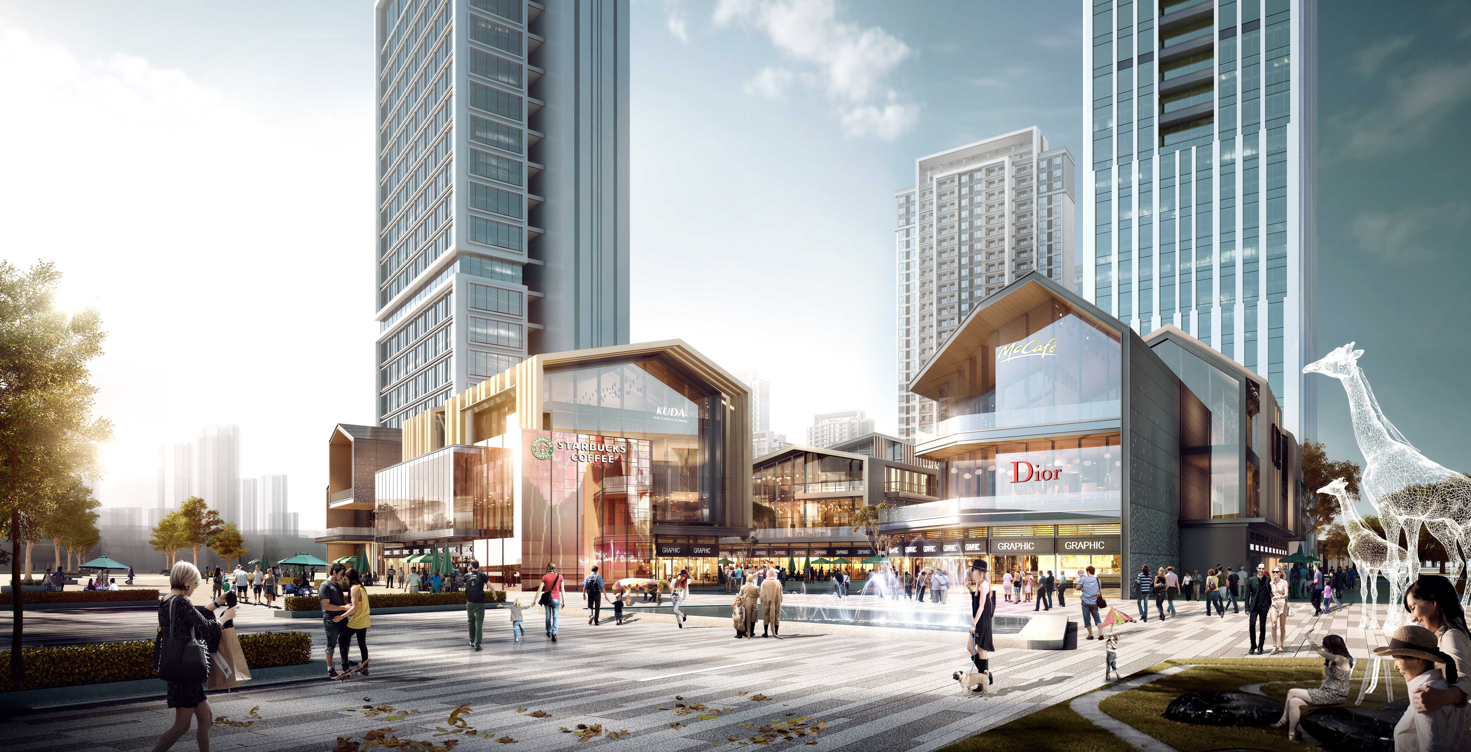 本項目有兩塊居住用地和一塊商業用地組成,總凈用地面積148875.81平方米,總建筑面積482009.97平方米,其中地上計容總建筑面積366255.74平方米,不計容建筑面積115754.23平方米(地下建筑面積109261.23平方米)。項目需配建1個12班幼兒園,建筑面積3600平方米。