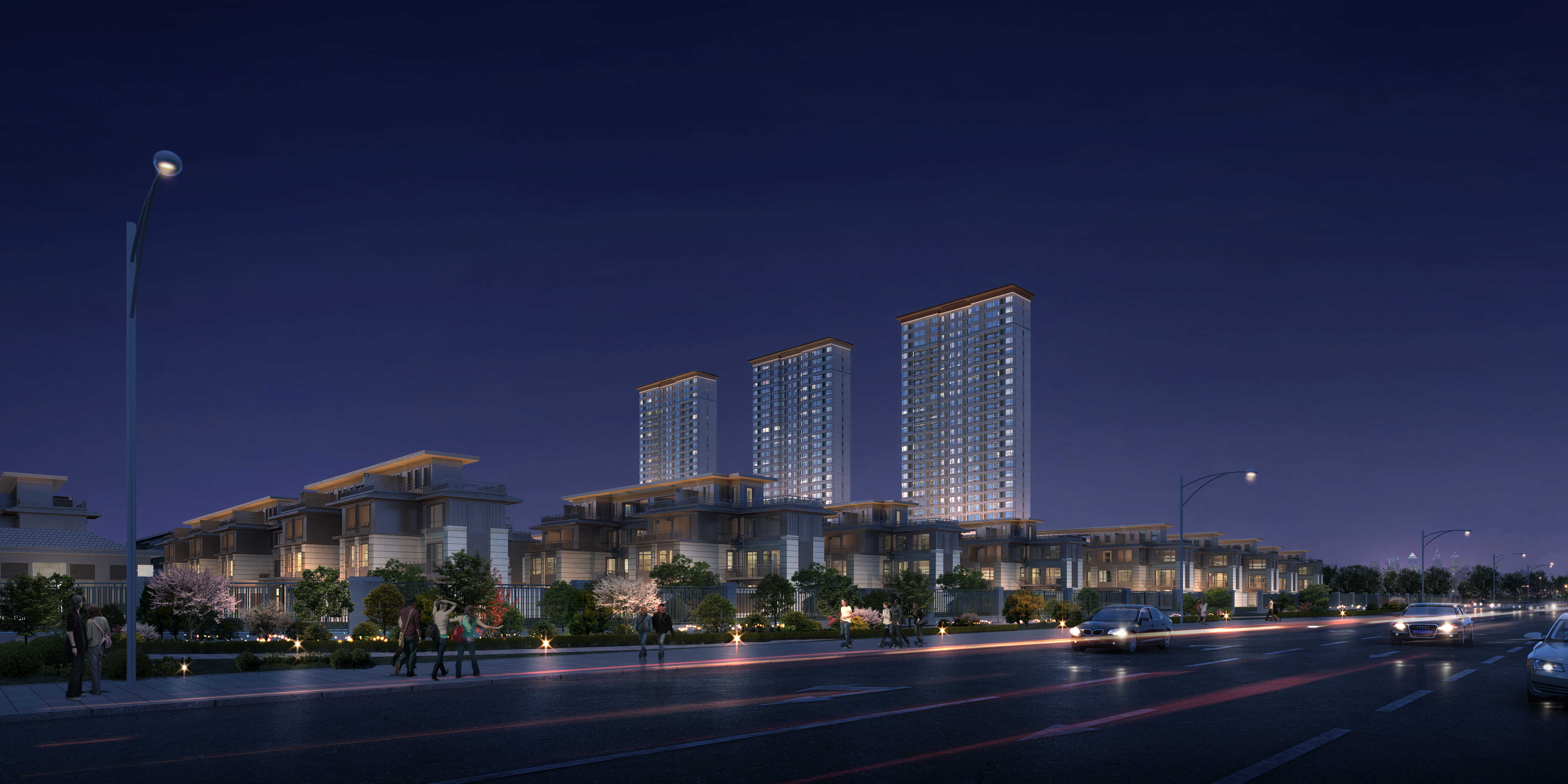 側為城市公共綠地,西北側為幼兒園,東側為城市快速干道,北側為居住用地,東側商業人流小?,西側和北側做商業可以更好地服務幼兒園、公園休閑人群和北側居住人群,故而商業用地價值?較高。結合地塊區域文化,社區打造成健康、綠色、休閑、養生的頤養公園化社區和私家園景,在建筑立面的選擇以具有濃厚地域特色?的傳統文化為根基,融入西方文化。把中式元素植入現代建筑語系,將傳統意境和現代風格對稱運用,用現代設計來隱喻中國的?傳統。承接區域的文化氣息.