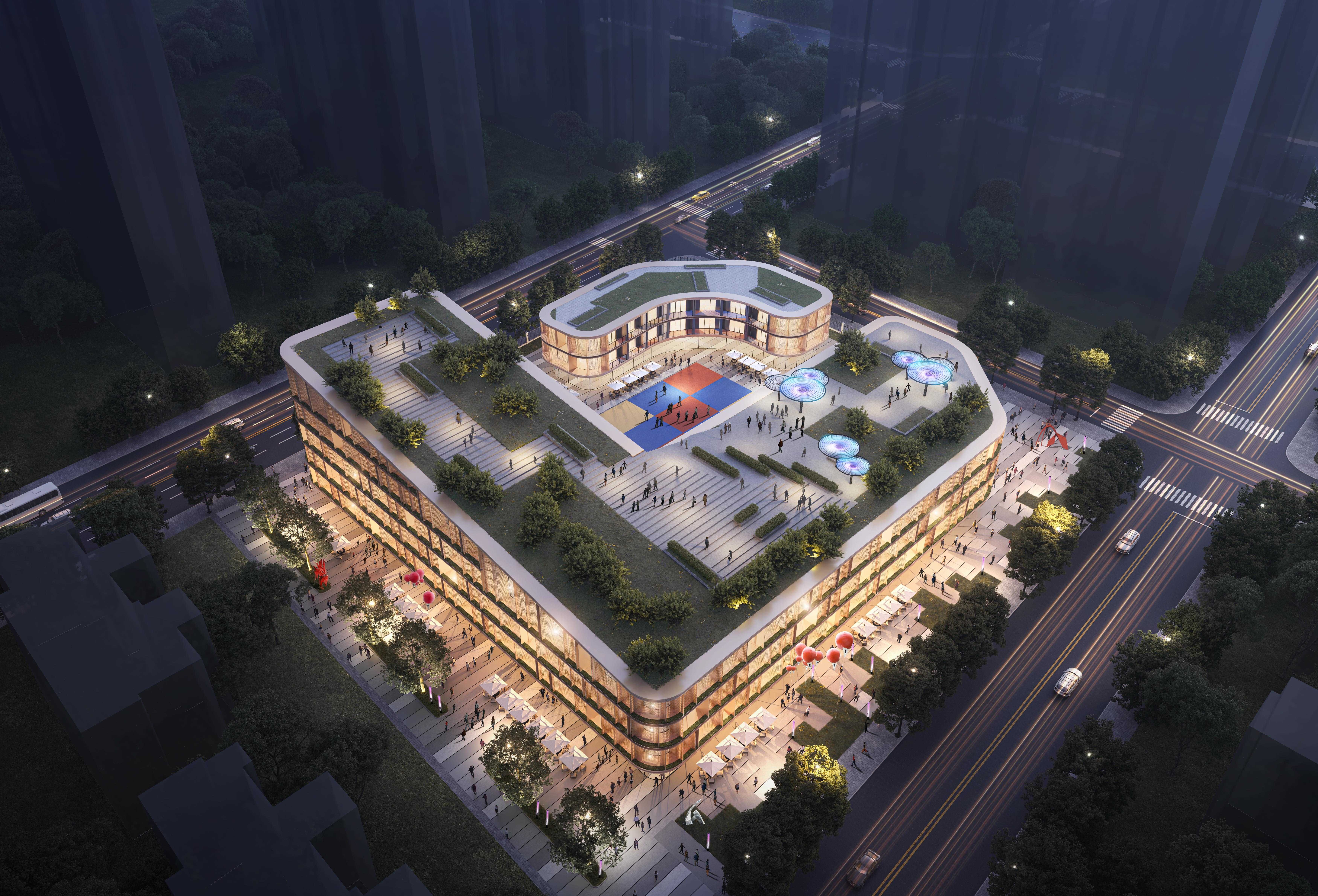 項目用地面積為11510㎡,總建筑面積27736平方米,其中地上計容建筑面積1.89萬平方米。主要功能包含衛生服務中心、養老服務用房、社區食堂,學齡兒童養育托管中心、文化活動中心、全民健身中心、菜市場、商業、銀行、電信、郵政等公用設施網點、9班幼兒園、開閉所、公共廁等設施。工程院方案團隊設想打造的鄰里中心作為社區是一站式綜合性生活服務與社區活動中心,應將城市、生態、人群、運營等四大要素的信息系統集成考慮,以場景匯聚的方式形成一種超越建筑的力量,最終打造成“幸福綜合體”。方案注重城市空間滲透、城市街角空間打造、廣場空間打造、城市庭院空間打造。為貫徹新發展理念,以節能環保,健康舒適為主導思想,創建低碳的健康社區,促進人與社會、自然之間的協調發展。