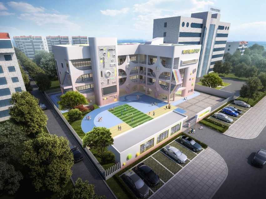 本項目為綜合樓,建筑面積為4982.92㎡,層數為5層,局部6層,層高為3.9m,建筑高度為23.40m。一至四層為普通教室,每層6間,共24個班,五層為專業教室,共4間。所有教室部分采用單廊式、開放式布置,普通教室南北向布置,兩邊通風采光,東西向為教室備課室及服務用房。目前該項目已建成,已投入使用。